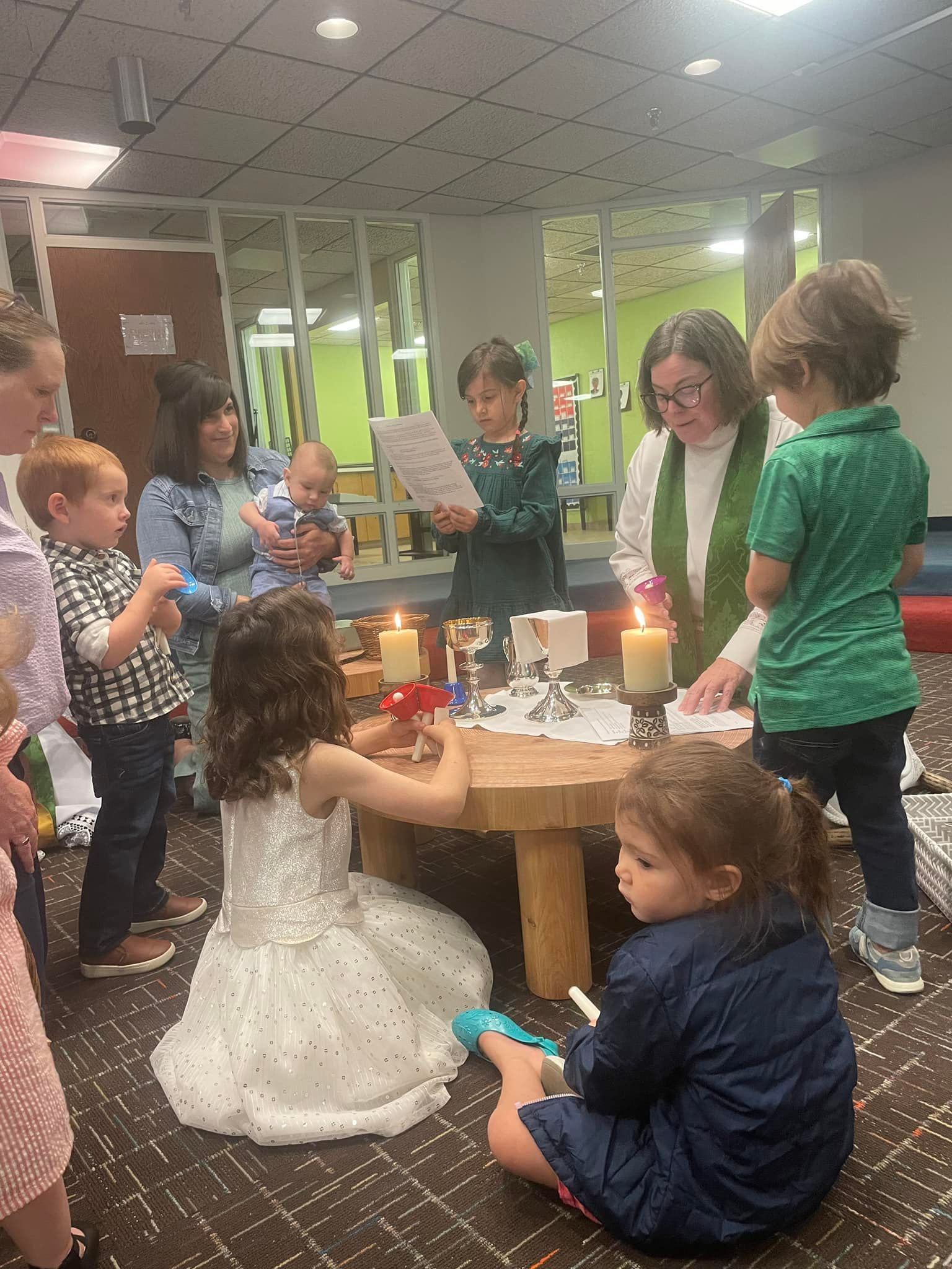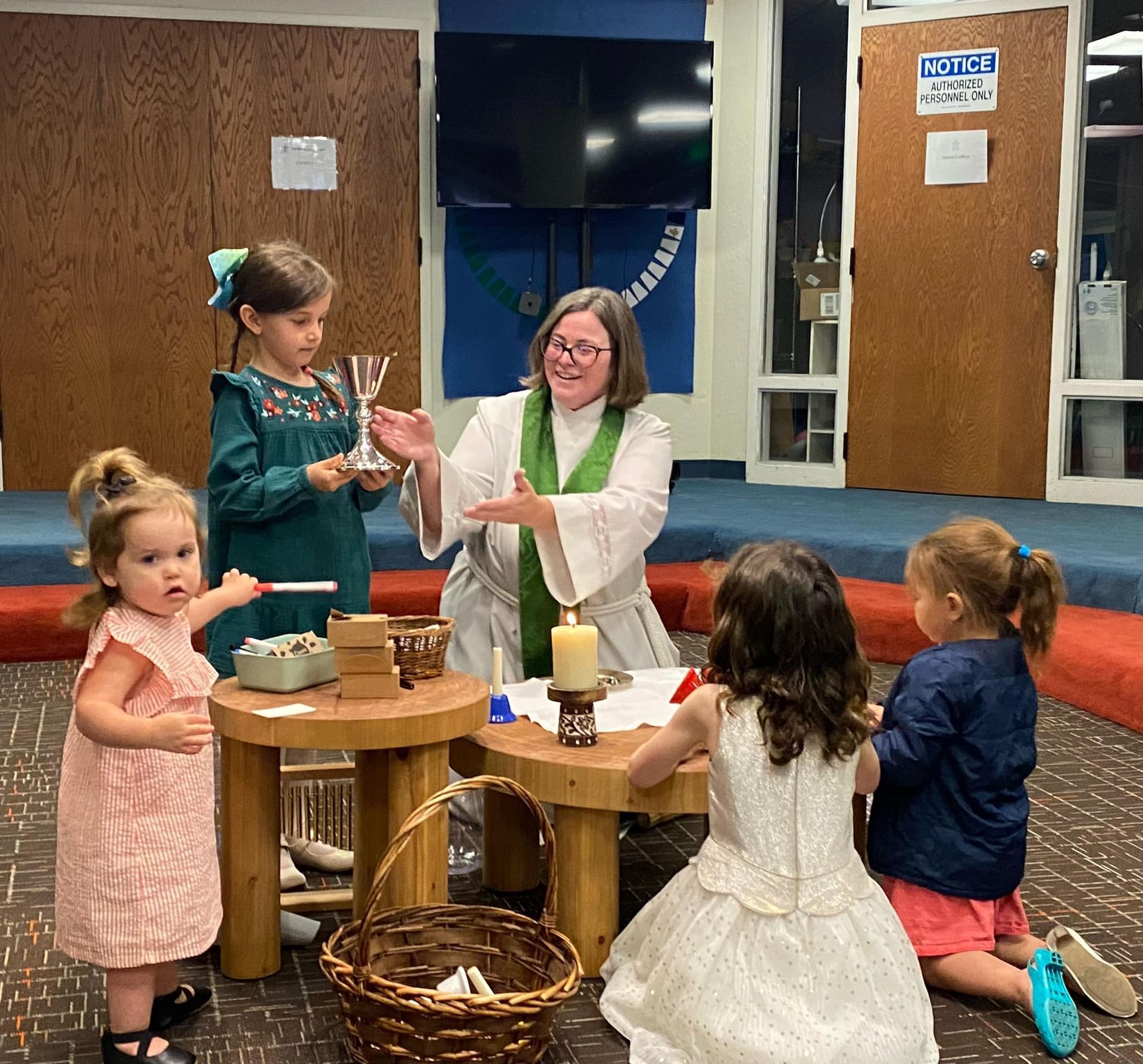 Messy Church meets once a month on Sunday at 9 am. It is a totally interactive communion service that allows small children to participate in all parts of the liturgy. Chimes, prayer cards, sanctus bells and confession stones!