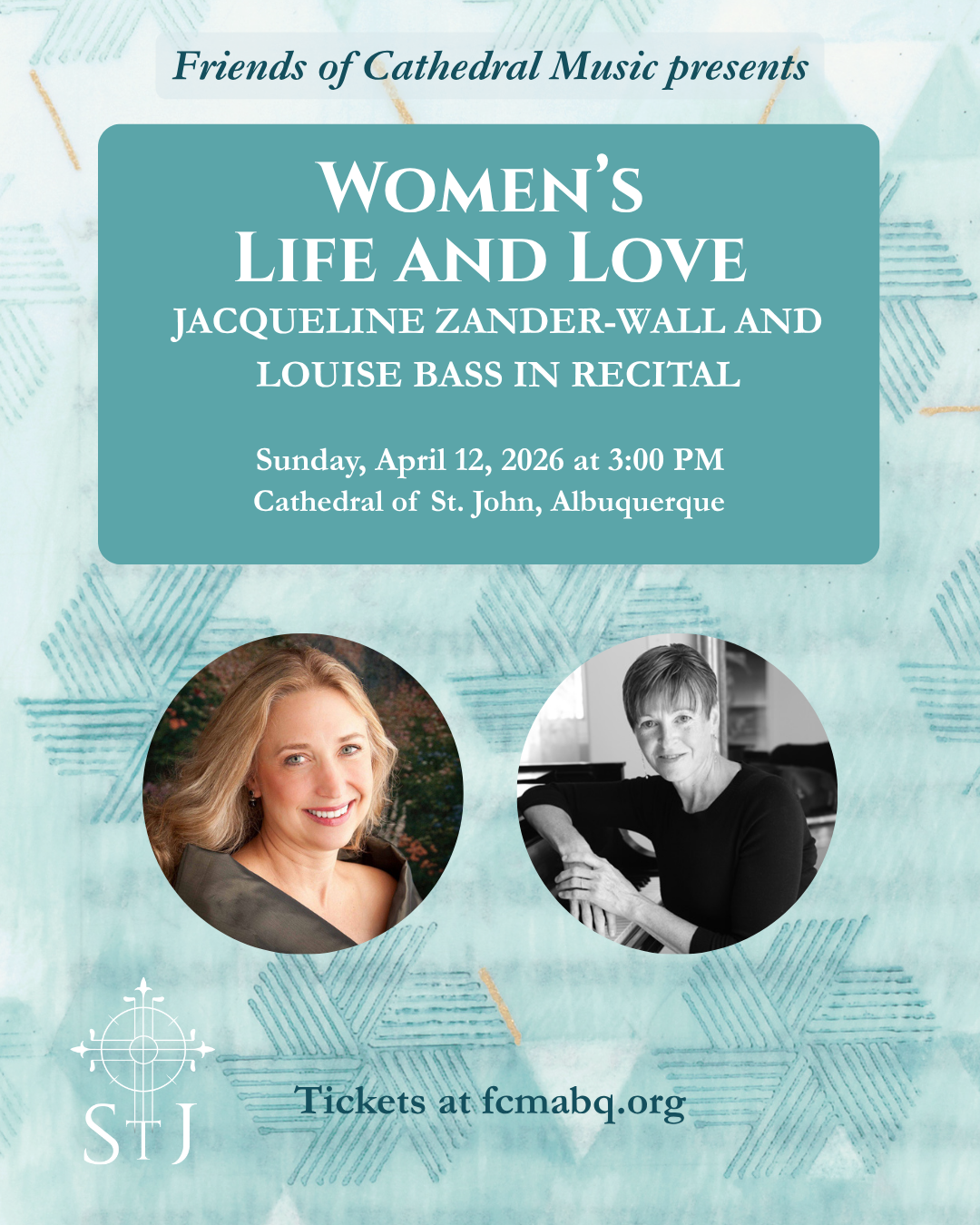 Enrich this season of reverence and contemplation with an afternoon of moving musical works. At the heart of this performance will be the New Mexico premiere of Via Crucis (The Way of the Cross) by Philip Moore, featuring the Cathedral’s Dean and Rector, The Very Rev’d Kristina Ann Maulden, as narrator, and Director of Cathedral Music, Canon Dr. Maxine Thévenot, as organ soloist.